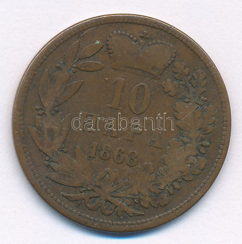 Szerbia 1868. 10p bronz ‘III. Mihály’ T:3 Serbia 1868. 10 Para bronze ‘Michael III’ C:F Krause KM#3<a href="https://www.darabanth.com/hu/gyorsarveres/435/kategoriak~Numizmatika/Kulfoldi-fem-es-ezustpenzek~1500031/Szerbia-1868-10p-bronz-III-Mihaly-
