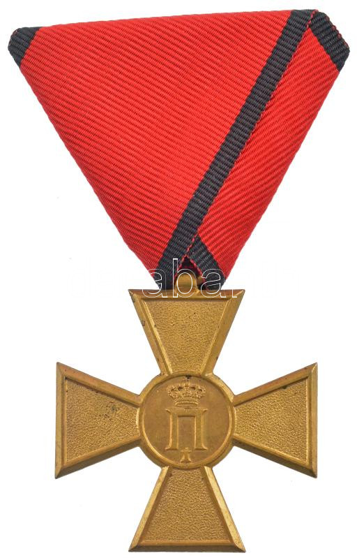 Szerbia 1913. ‘Emlékkereszt 1913 – Balkáni Háborúk’ aranyozott bronz kitüntetés háromszög mellszalagon T:1- kis patina / Serbia 1913. ‘Commemorative Cross 1913 – of the Balkan Wars’ gilt bronze decoration with triangle ribbon C:AU small