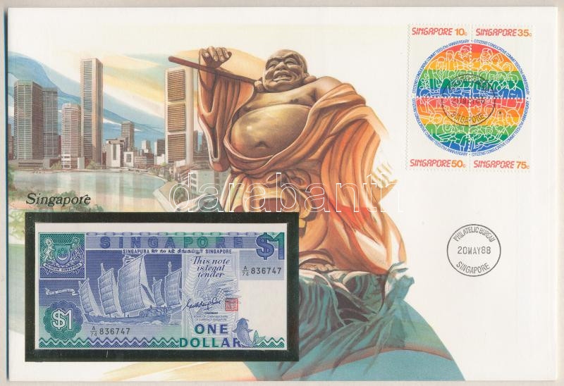 Szingapúr 1987. 1D borítékban, alkalmi bélyeggel és bélyegzéssel T:I Singapore 1987. 1 Dollar in envelope with stamps and cancellations C:UNC<a href="https://www.darabanth.com/hu/gyorsarveres/431/kategoriak~Numizmatika/Ermes-es-bankjegyes-boritekok~