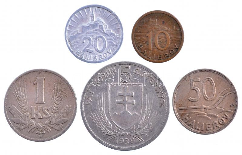 Szlovákia 1939-1942. 10h-5K (5xklf) T:2-3 Slovakia 1939-1942. 10 Haleru – 5 Korun (5xdiff) C:XF-F