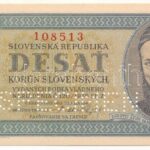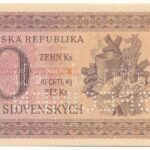 Szlovákia 1943. 10K „SPECIMEN” perforációval, „Jd 23 108513” T:UNC / Slovakia 1943. 10 Korun with „SPECIMEN” perforation, „Jd 23 108513” C:UNC Krause 6.s