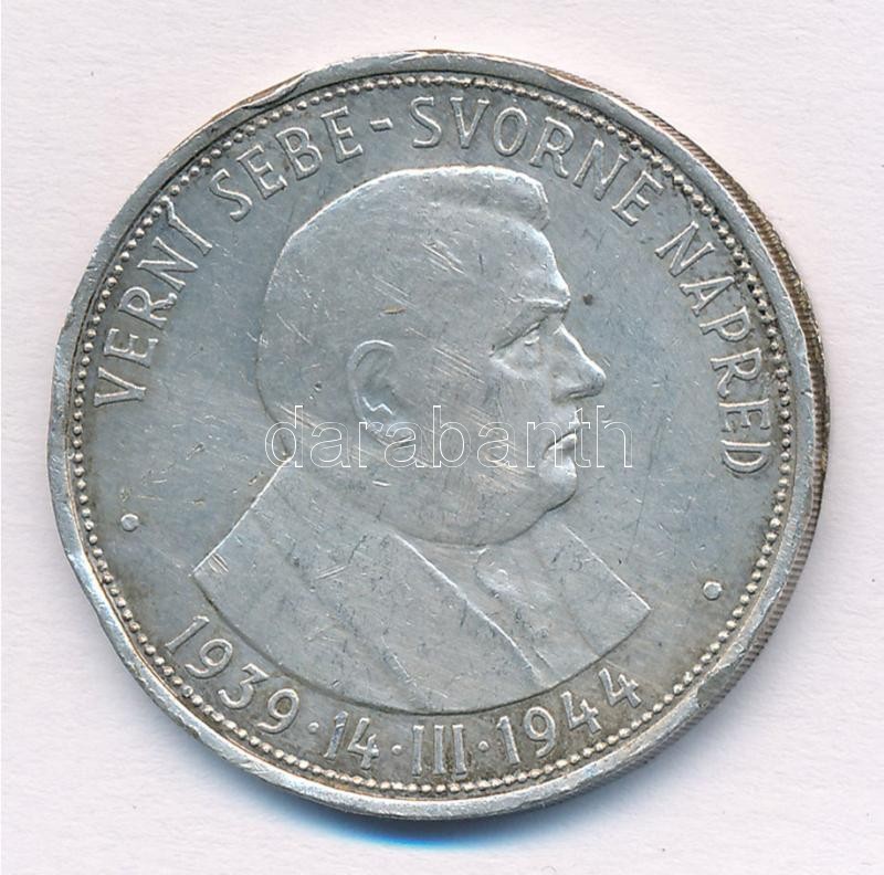 Szlovákia 1944. 50K Ag ‘A Függetlenség 5. évfordulója’ T:2- patina, ph, ü. Slovakia 1944. 50 Korun Ag ‘The 5th Anniversary of Independence’ C:VF patina, edge error, ding Krause KM#10