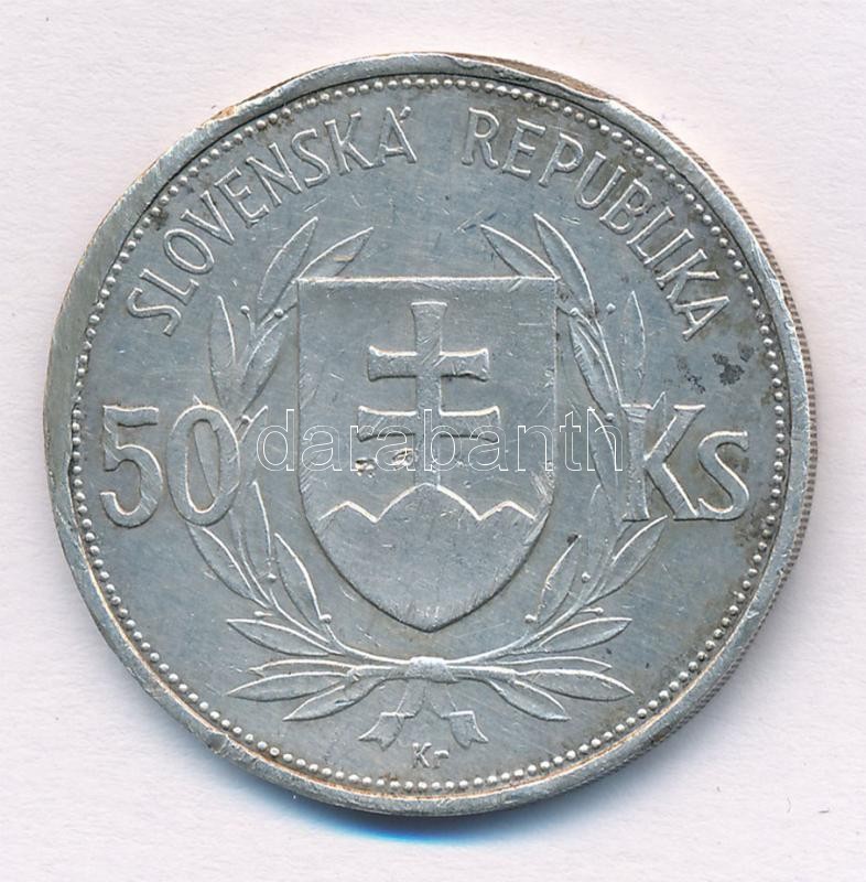 Szlovákia 1944. 50K Ag ‘A Függetlenség 5. évfordulója’ T:2- patina, ph, ü. Slovakia 1944. 50 Korun Ag ‘The 5th Anniversary of Independence’ C:VF patina, edge error, ding Krause KM#10<a href="https://www.darabanth.com/hu/gyorsarveres/416/kategoriak~N