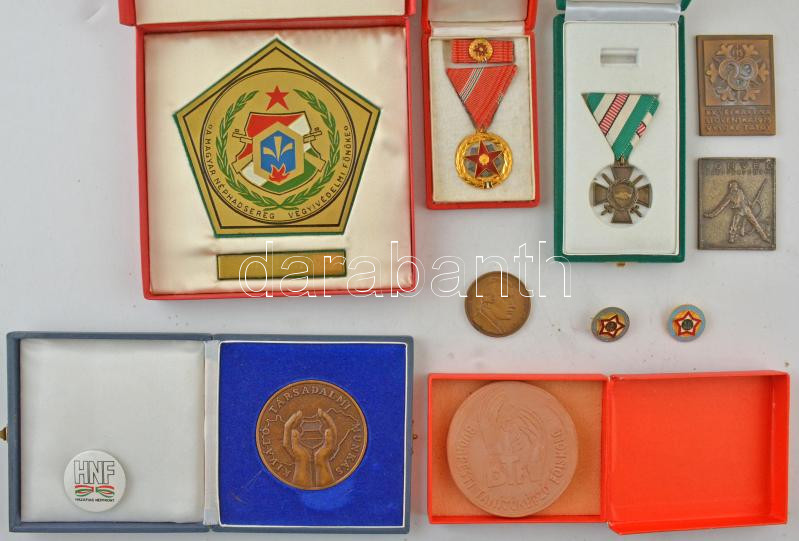 Szocreál kitüntetés és plakett tétel 10 db összesen benne Önkéntes rendőri szolgálat 1 és 5 év, vegyvédelmi plakett stb