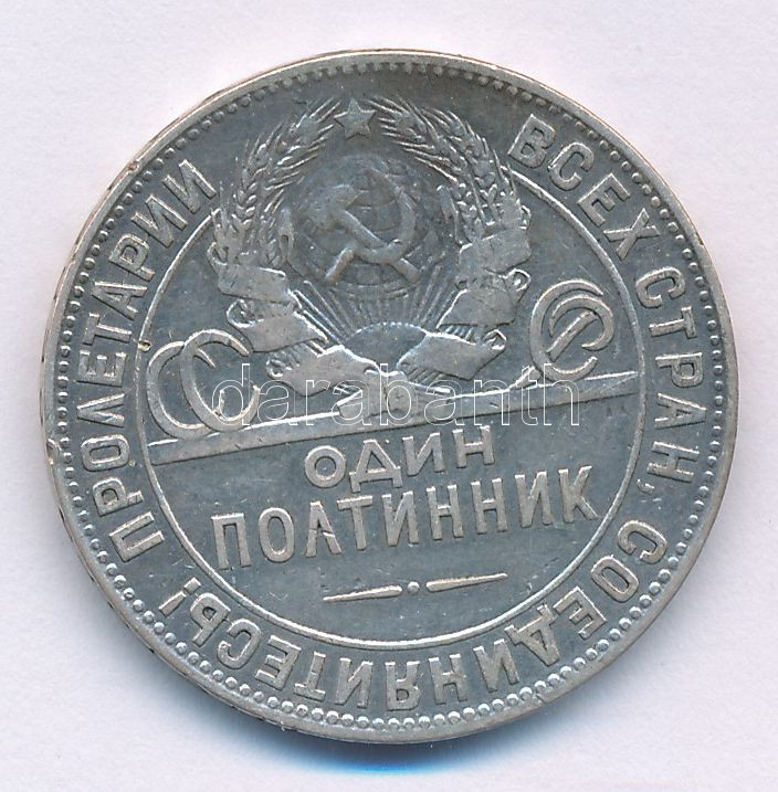 Szovjetunió 1924. 1P (50k) Ag T:XF,VF kis ph Soviet Union 1924. 1 Poltinnik (50 Kopecks) Ag C:XF,VF small edge error Krause Y#89.1<a href="https://www.darabanth.com/hu/gyorsarveres/439/kategoriak~Numizmatika/Kulfoldi-fem-es-ezustpenzek~500014/Szovj