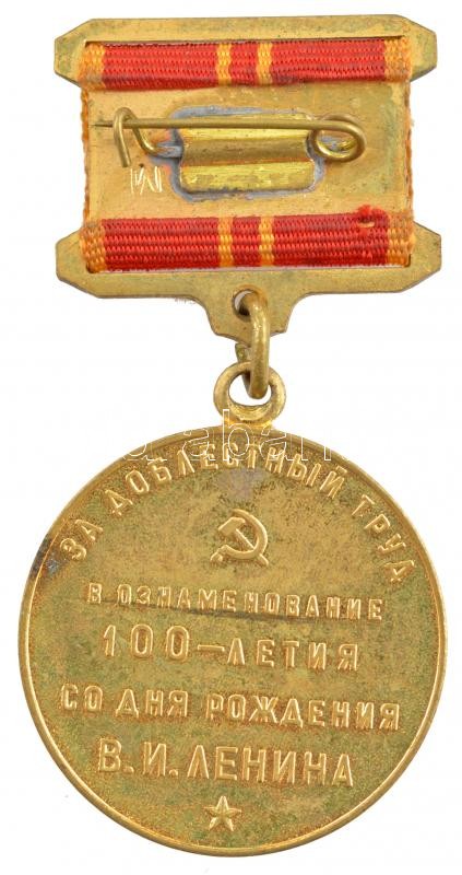 Szovjetunió 1970. ‘Lenin születésének 100. évfordulója’ kétoldalas, aranyozott kitüntetés szalagon T:2- Soviet Union 1970. ‘100th anniversary of Lenin’s birth’ two-sided, gilt medallion on ribbon C:VF