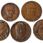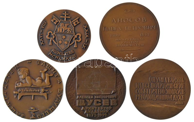 Szovjetúnió 1974-1983. ‘Híres emberek’ 5 darabos kétoldalas bronz emlékérem tétel (55-60mm) T:1- Soviet Union 1974-1983. ‘Famous People’ 5 pieces two-sided bronze medallion lot (55-60mm) C:AU<a href="https://www.darabanth.com/hu/gyorsarveres/434/kat