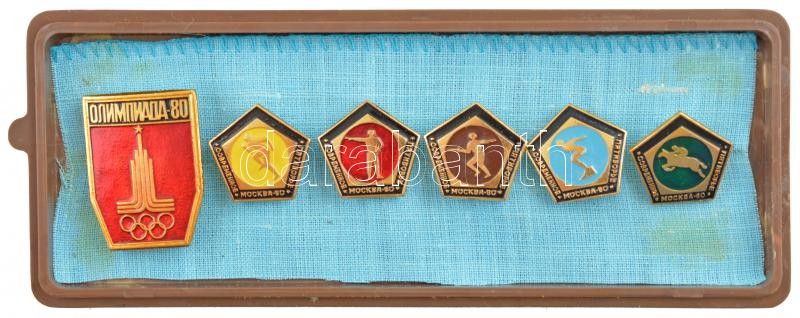 Szovjetunió 1980. 6db-os ‘Moszkvai Olimpia’ aranyozott, zománcozott fém jelvény tétel tokban (6xklf) T:1- Soviet Union 1980. 6pcs of ‘Moscow Olympics’ gilt, enamelled metal badge in plastic case (6xdiff) C:AU