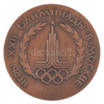Szovjetunió 1980. ‘Moszkvai Olimpia’ kétoldalas bronz emlékérem tanúsítvánnyal, eredeti tokban (60mm) T:1 Soviet Union 1980. ‘Olympics in Moscow’ two sided bronze commemorative medallion with certification in original case (60mm) C:UNC<a href="https