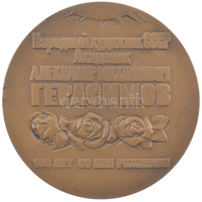 Szovjetunió 1982 ‘Alekszandr Mihajlovics Geraszimov 1881-1963 festőművész’ bronz emlékérem s: Volkov. d:60 mm T: 2- ph. / 1982 Soviet Union ‘Aleklsandr Mihailovich Gerasimov’ bronze commemorative coin d: 60 mm, C: EF edge error<a href="https://www.d