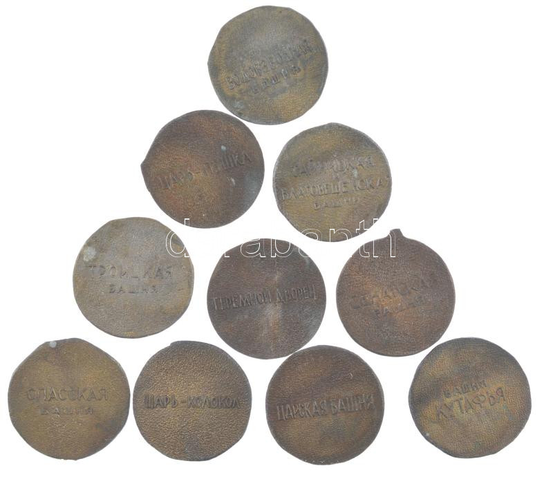 Szovjetúnió DN ‘Híres szovjet épületek’ 10 darabos bronzírozott fém emlékérem sorozat (40mm) T:1- patina Soviet Union ND ‘Famous soviet buildings’ 10 pieces bronze patinated metal commemorative medallion serie (40mm) patina<a href="https://www.darab