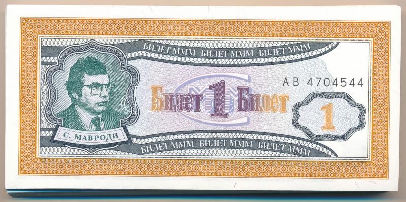 Szovjetunió / Oroszország 1989-1994. 1B ‘Mavrodi (68x) bankjegyek’ közte sorszámkövetők T:I,I- Soviet Union / Russia 1989-1994. 1 Biletov ‘Mavrodi banknotes’ (68x) with some consecutive serials C:UNC,AU