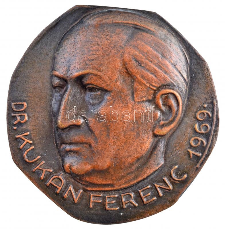 Tápai Antal (1902-1986) 1969. ‘Dr. Kukán Ferenc’ kétoldalas, öntött bronz plakett (~108-109mm) T:1- / Hungary 1969. ‘Ferenc Kukán MD’ double-sided, cast bronze plaque. Sign.: Antal Tápai (~108-109mm) C:AU<a href="https://www.darabanth.com/hu/nagyauk