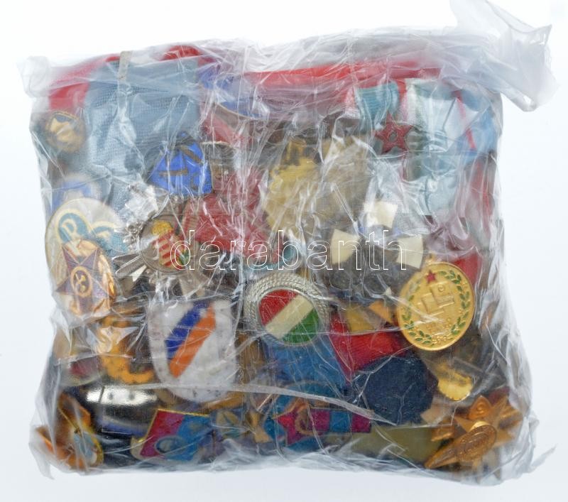 Több mint 100db vegyes, magyar és külföldi jelvényből álló tétel. Közte: ~1910. ‘Magyar Kárpát Turista SE’ zománcozott Br jelvény (2x) + ~1970-1980. ‘Önkéntes rendőr’ zománcozott fém jelvény + ~1960-1980. ‘Kiváló Szakaszparancsnok’ aranyozott, zománcozott