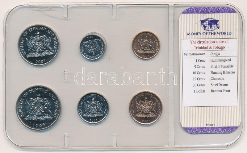 Trinidad és Tobago 1995-2007. 1c-1$ (6xklf) forgalmi összeállítás sérült műanyag tokban T:1-2 Trinidad & Tobago 1995-2007. 1 Cent – 1 Dollar (6xdiff) coin set in damaged plastic case C:UNC-XF<a href="https://www.darabanth.com/hu/gyorsarveres/435/kat