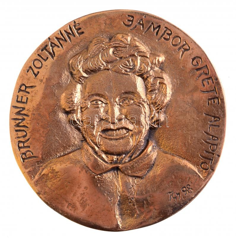 Turi György (1952- ) 1998. ‘Brunner Zoltánné Jámbor Gréte alapító / Időskutatási Alapítvány – Idősgondozási Alapítvány’ Br emlékérem (99mm) T:1-<a href="https://www.darabanth.com/hu/gyorsarveres/440/kategoriak~Numizmatika/Magyar-emlekveretek-plakett