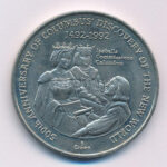 Turks- és Caicos-szigetek 1991. 5C ‘II. Erzsébet / Az Új Világ felfedezése’ Cu-Ni C:AU Turks and Caicos Islands 1991. 5 Crown ‘ELizabeth II / Discovery of the New World’ Cu-Ni C:AU