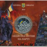 Ukrajna 2014. ‘Narancsos forradalom’ kétoldalas, részben festett fém emlékérem bliszterben (35mm) T:PP Ukraine 2014. ‘Orange revolution’ two-ásided, partially painted metal medallion in blister (35mm) C:PP