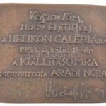 Várhelyi György (1942-) 1983. ‘Várhelyi György / Köszönöm, hogy eljött(él) a Helikon Galériába 1983. április 14-én a kiállításomra megnyitotta Aradi Nóra’ kétoldalas bronz emlékplakett (65x55mm) T:1-<a href="https://www.darabanth.com/hu/gyorsarveres
