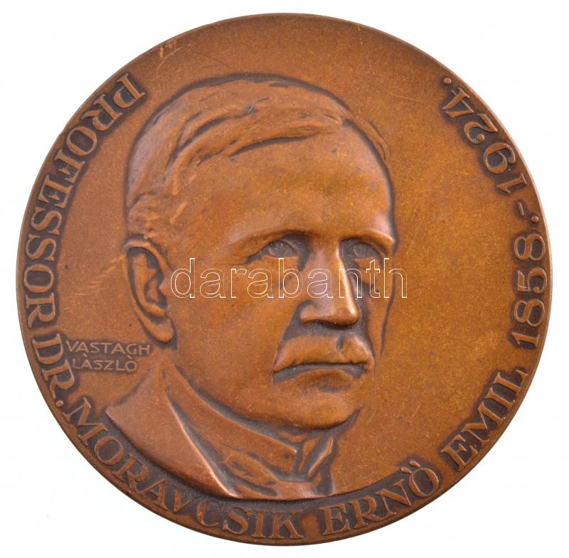 Vastagh László (1902-1972) 1927. ‘Professor Dr. Moravcsik Ernő Emil 1858-1924 / Officium ante omnia’ kétoldalas Br emlékérem (60mm) T:2,2- patina, karc / Hungary 1927. ‘Dr. Professor Ernő Emil Moravcsik 1858-1924 / Officium ante omnia’ two-sided Br commem