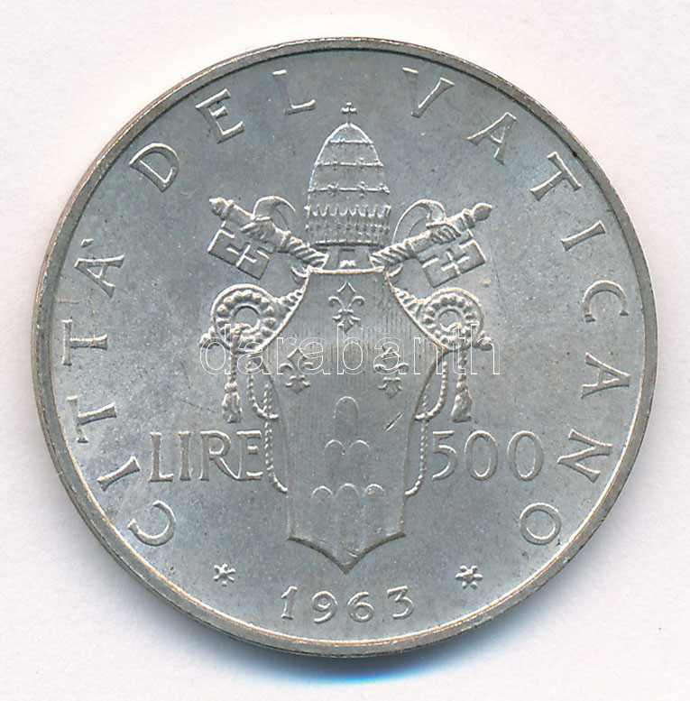 Vatikán 1963. 500L Ag ‘VI. Pál pápa’ T:1,1- patina Vatican 1963. 500 Lire Ag ‘Pope Paulus VI’ C:UNC,AU patina Krause KM#83.1