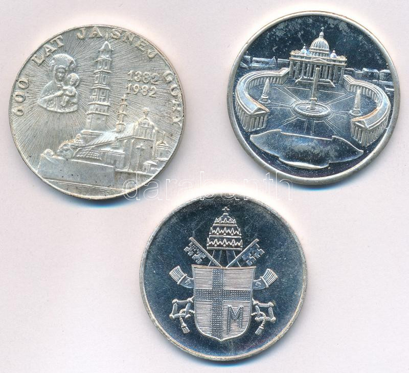 Vatikán DN ‘II. János Pál pápa’ kétoldalas, ezüstözött fém emlékérem (3xklf) T:1-,2 Vatican ND ‘Pope John Paul II’ two-sided, silver plated metal medallion (3xdiff) C:AU,XF<a href="https://www.darabanth.com/hu/gyorsarveres/435/kategoriak~Numizmatika