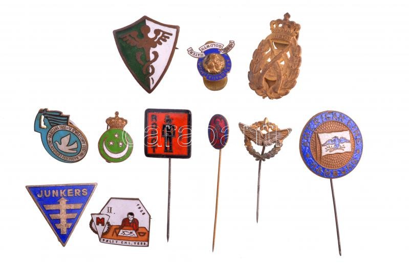 Vegyes 11db-os külföldi és magyar jelvény tétel, közte jobb darabokkal, mint: ‘Junkers’, ‘American Line – Hamburg’, ‘Metro Goldwyn Mayer’, 1958. ‘Páli T Eml. Vers (Emlék Verseny’ T:2<a href="https://www.darabanth.com/hu/gyorsarveres/409/kategoriak~N