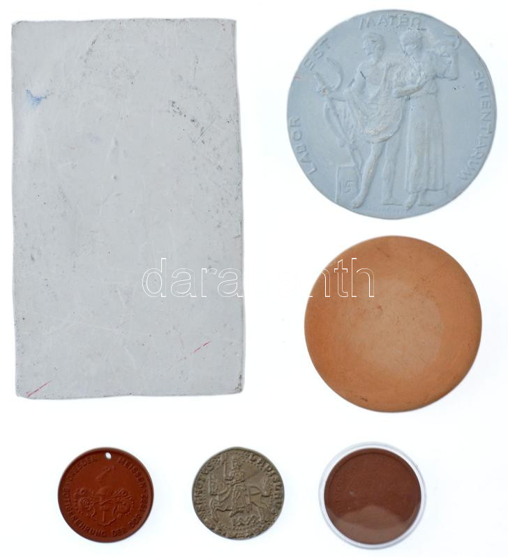 Vegyes ~1960-1980. 6 darabos magyar és külföldi gipsz, kerámia és porcelán emlékérem, illetve plakett tétel T:1–2- közte lyukasztott 6 pcs of mixed hungarian and foreign ~1960-1980. gypsum, ceramics and porcelain commemorative medallion and plaque lot C: