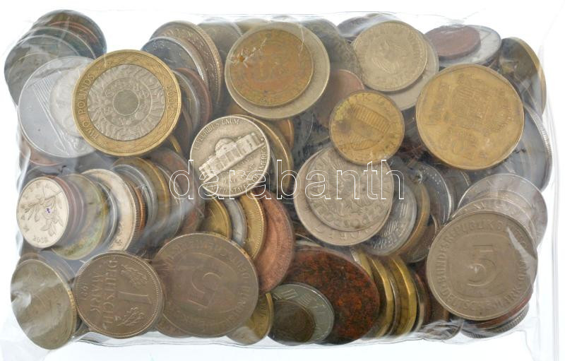 33067. tétel:Vegyes, magyar és külföldi érmetétel mintegy ~1kg súlyban T:vegyes Mixed, Hungarian and foreign coin lot (~1kg) C:mixed<a href="https://www.darabanth.com/hu/gyorsarveres/431/kategoriak~Numizmatika/Vegyes-papir-es-fempenz-tetelek~1500022/Vegyes-magya