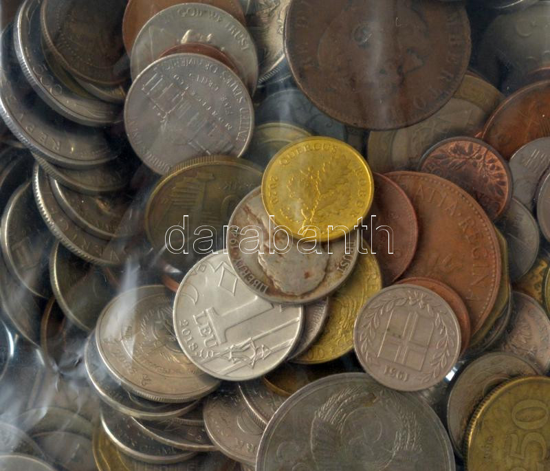 Vegyes, főleg külföldi érmetétel mintegy ~2kg súlyban, közte egzotikus országok T:vegyes Mixed, mostly foreign coin lot, within egzotic countries (~2kg) C:mixed<a href="https://www.darabanth.com/hu/gyorsarveres/434/kategoriak~Numizmatika/Kulfoldi-fe