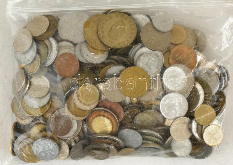 Vegyes, magyar és külföldi érmetétel mintegy ~1kg súlyban T:vegyes Mixed, Hungarian and foreign coin lot (~1kg) C:mixed<a href="https://www.darabanth.com/hu/gyorsarveres/427/kategoriak~Numizmatika/Vegyes-papir-es-fempenz-tetelek~2000021/Vegyes-magya