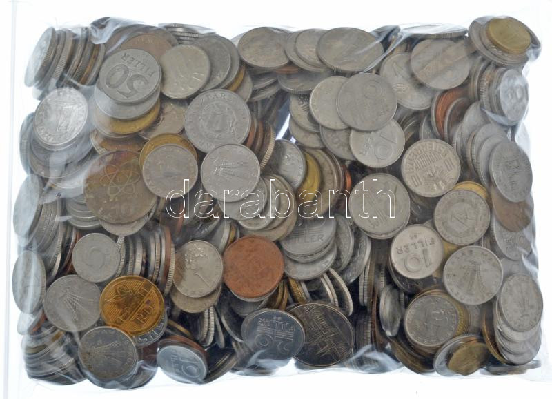 Vegyes, nagyobbrészt magyar, de külföldi érméket is tartalmazó tétel mintegy ~1,1kg súlyban T:vegyes Mixed coin lot, mostly Hungarian, but also containing foreign coins too (~1,1kg) C:mixed