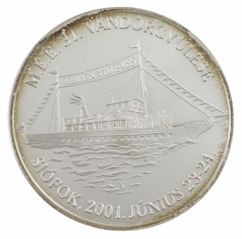 Veres Gábor (1955-) 2001. ‘MÉE 31. Vándorgyűlése – Siófok / A Magyar Éremgyűjtők Egyesülete első vándorgyűlése a harmadik évezredben’ kétoldalas, peremen jelzett Ag emlékérem (33,87g/0.925/42,5mm) T:1- (PP) patina, karc