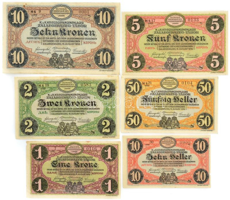 Zalaegerszeg / hadifogolytábor 1916. augusztus 15. 10f + 50f + 1K + 2K + 5K + 10K arab sorozat és sorszámmal, közte 4x ‘MS’ betűjelzéssel T:I-II fo. Adamo HHZ1.1V, HHZ1.3.3V, HHZ1.4.1V, HHZ1.5.3V, HHZ1.6.3V, HHZ1.7.3V