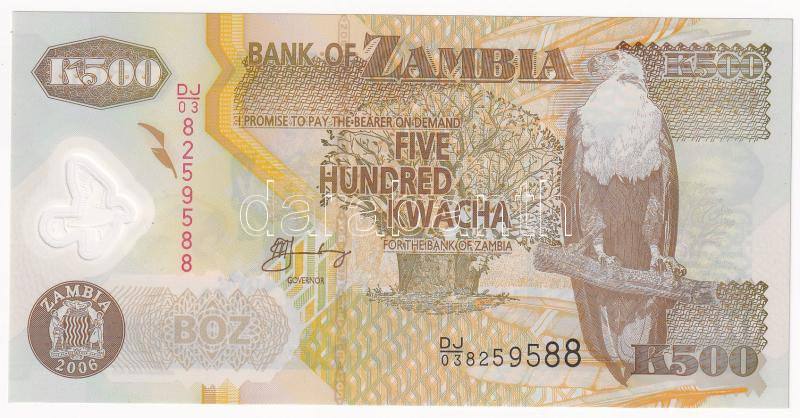 Zambia 2006. 500K ‘DJ/03 8259588’ T:I Zambia 2006. 500 Kwacha ‘DJ/03 8259588’ C:UNC Krause 43.e<a href="https://www.darabanth.com/hu/gyorsarveres/435/kategoriak~Numizmatika/Kulfoldi-bankjegyek~1500030/Zambia-2006-500K-DJ03-8259588-TI-Zambia-2006-500