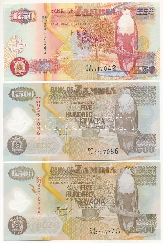 Zambia 2007. 50K + 2009. 500K (2x) T:I,I- Zambia 2007. 50 Kwacha + 2009. 500 Kwacha (2x) C:UNC,AU
