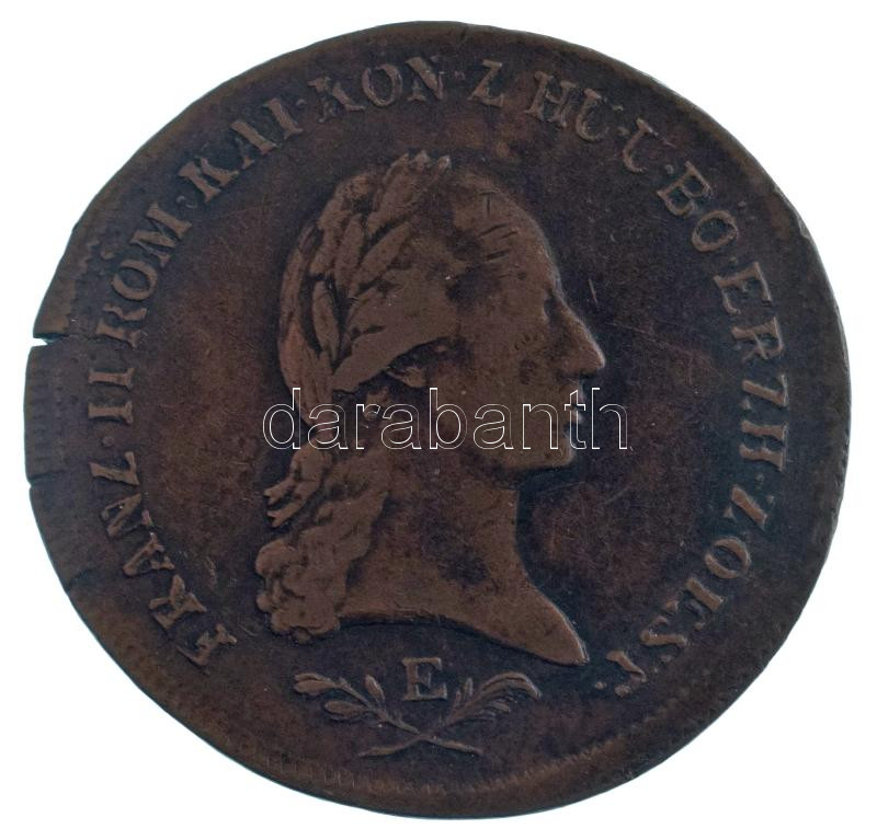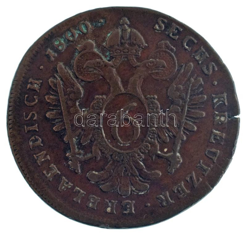 1800E 6kr Cu „I. Ferenc” T:VF, repedés / Hungary 1800E 6 Kreuzer Cu „Francis I” C:VF, crack Huszár: 2019, Unger III.: 1399.b, Krause KM#2128