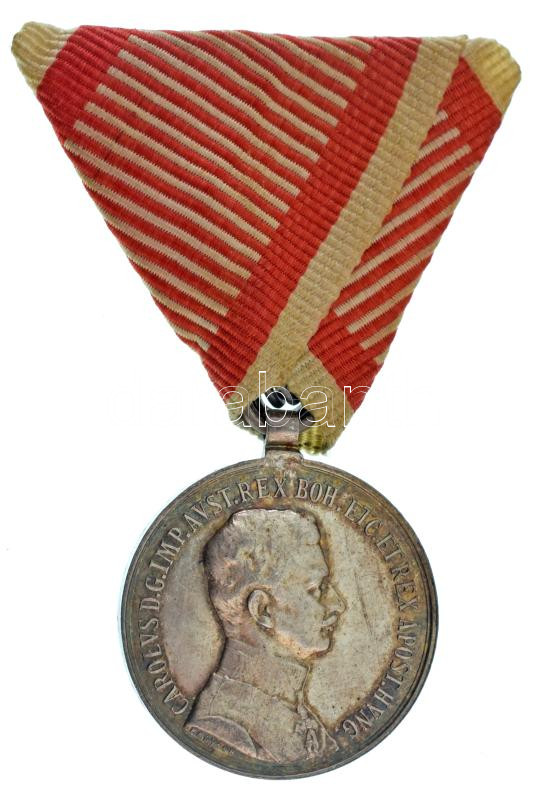 1917. „Károly Ezüst Vitézségi Érem II. osztálya” peremen jelzett Ag kitüntetés eredeti mellszalagon. Szign.: Kautsch T:AU,XF patina / Hungary 1917. „Silver Gallantry Medal, 2nd Class” Ag decoration, hallmark on edge with original ribbon. Sign.: Kautsch C:AU,XF patina NMK