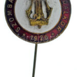 ~1920-1930. „Szombathelyi Cipész Dalkör 1920” zománcozott bronz dalos kitűző (25mm) T:AU / Hungary ~1920-1930. „Szombathely Shoemaker’s Singing Circle 1920” enameled bronze pin (25mm) T:AU