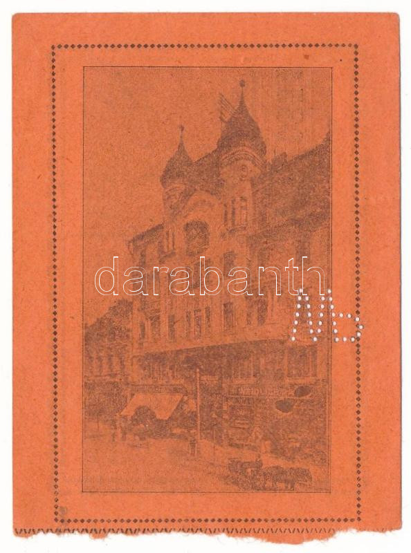 Miskolc ~1920. „Weidlich Pál cég Miskolczon” 20f értékű bón „WP” perforációval, „0854” sorszámmal T:AU,XF / Hungary / Miskolc ~1920. „Weidlich Pál cég Miskolczon” voucher about 50 Fillér, with „WP” perofration and „0854” serial number C:AU,XF Adamo