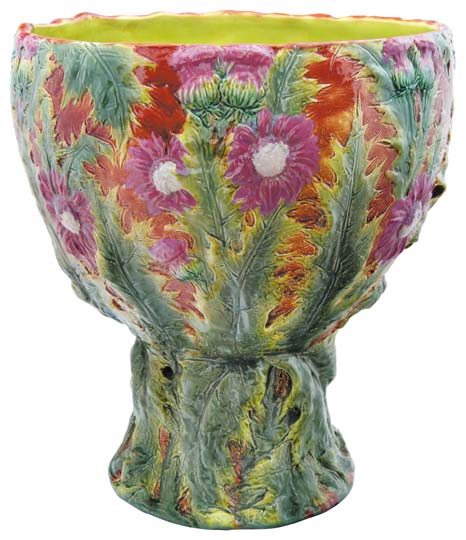 182. tétel, Bogáncsos kaspó posztamenssel, Zsolnay, 1899
