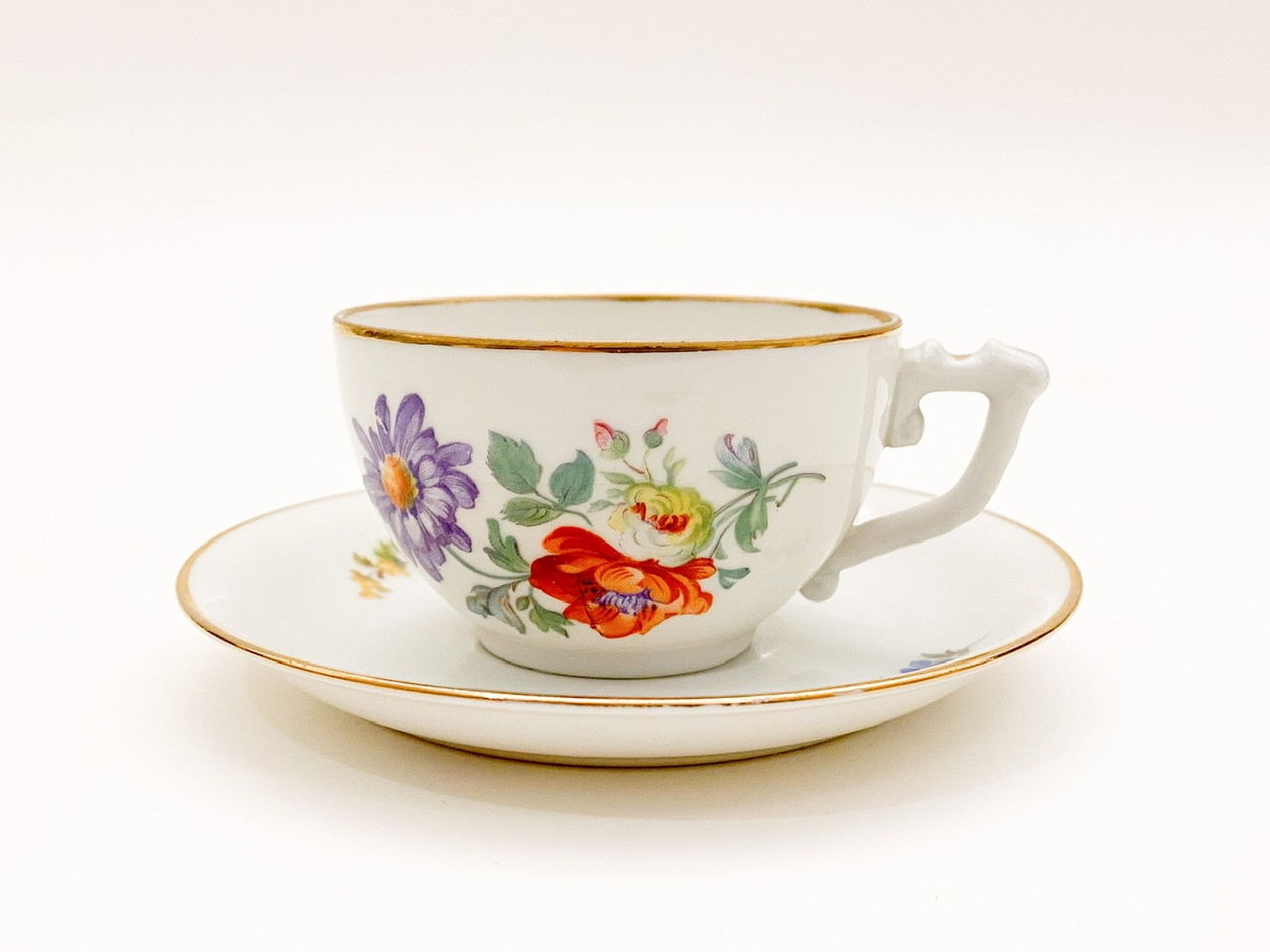 Hüttl Tivadar Aquincum, kézi festett porcelán mokkáscsésze alátéttel, jelezve.