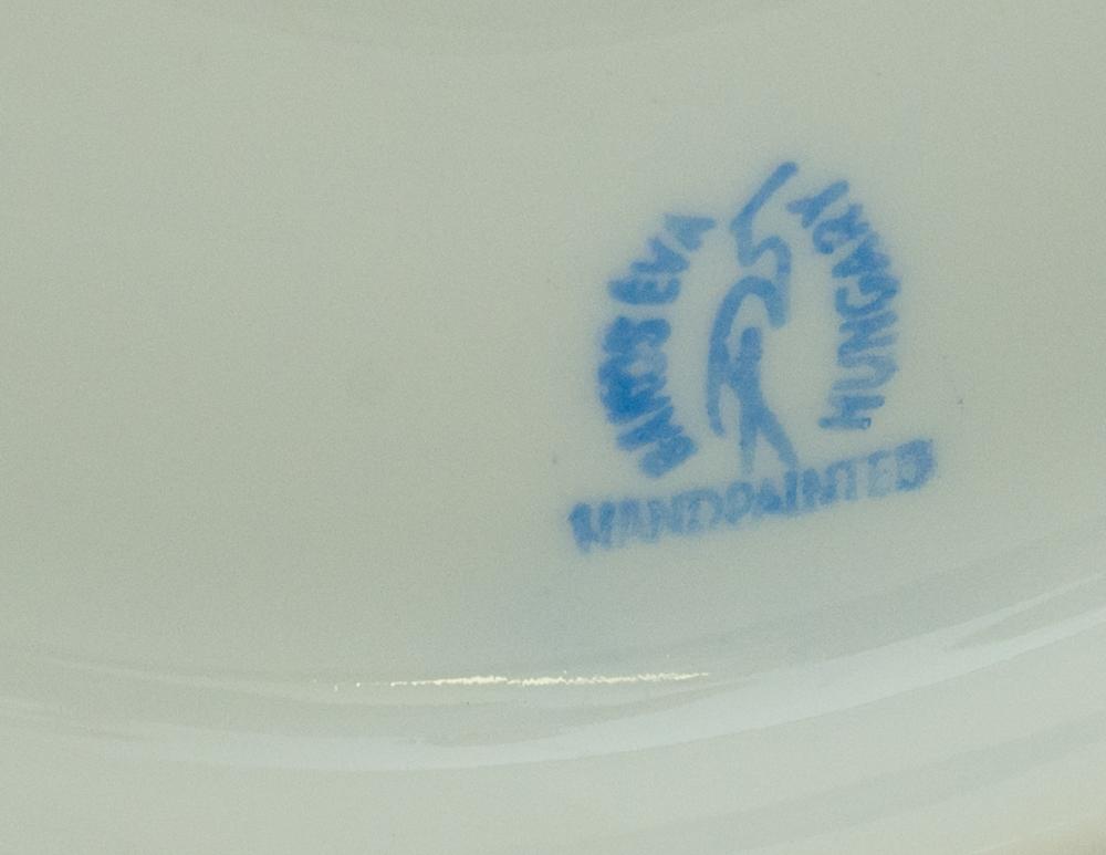 Kikiáltási ár: 150 000 FtKézzel festett porcelán, alján a porcelánfestő jelzésével, kopásnyomokkal, m: 23 cm