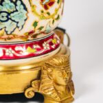 Ár: 60 000 FtZsolnay manufaktúra, 40 x 20 cm, Porcelánfajansz, plasztikus fülformázás, áttört talpazat, kecses formakorongozás, orientális motívumokkal díszfestve, 1885-1890