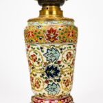 Ár: 60 000 FtZsolnay manufaktúra, 40 x 20 cm, Porcelánfajansz, plasztikus fülformázás, áttört talpazat, kecses formakorongozás, orientális motívumokkal díszfestve, 1885-1890