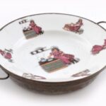 Gyermek tányérmelegítő, porcelán, réz. Tányéron kis hajszálrepedésekkel, kopásokkal, jelzés nélkül. d: 22 cm<a href="https://www.darabanth.com/hu/gyorsarveres/424/kategoriak~Porcelan-keramia-uveg/Porcelan~500006/Gyermek-tanyermelegito-porcelan-rez-T