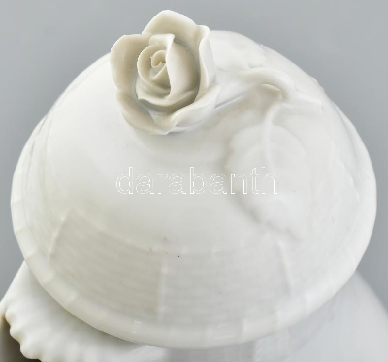 Herendi nyeles kiöntő, rózsás fedéllel. Fehér mázas. Kézzel festett, jelzett, hibátlan. m: 19 cm