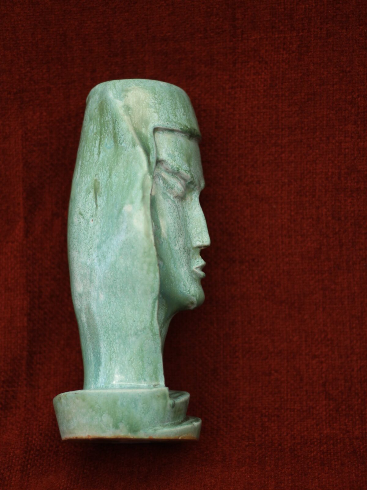 Huppán (József?) Kerámia: Art deco fej – váza (zöld)