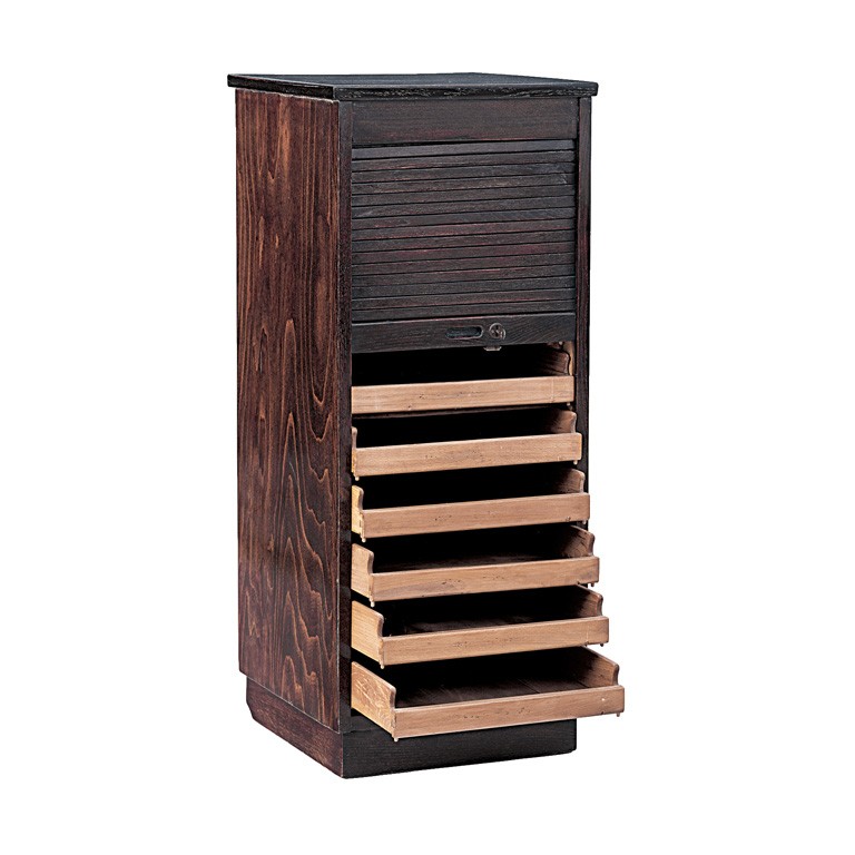 magyar, 20. sz. eleje, bükkfa, zárható redőnyös ajtó mögötti fiókokkal, 1db kulccsal, 113*47*47 cm