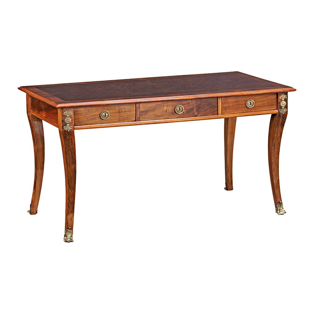 magyar, 19. sz. vége, fenyőfa alapon diófa és diógyökér borítással, három fiókkal, sárgaréz oroszlánkarmos papucsokkal, felújított